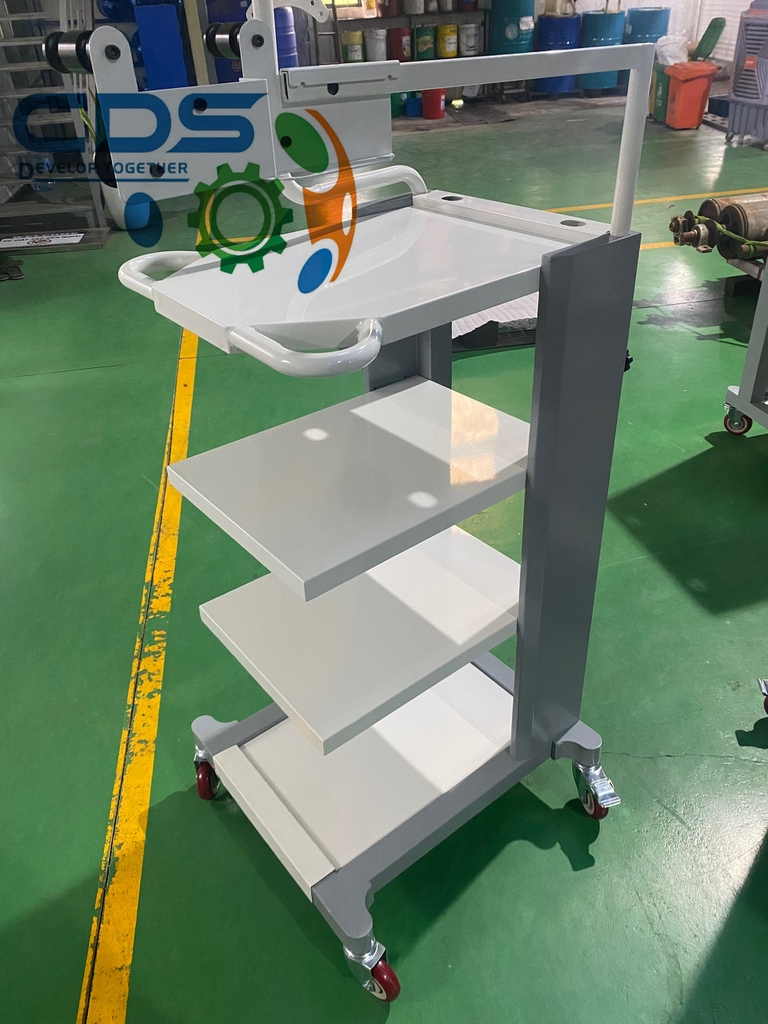 Xe có bánh xe linh hoạt, dễ dàng đẩy đến các phòng bệnh hoặc khu vực cần sử dụng.